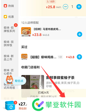 2、然后我们打开饿了么选择一家外卖商品,选好以后点击立即结算。