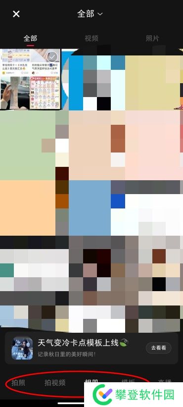 2、从这里我们就可以看到我们的图库,然后我们选择自己想要发布的图片或者视频,也可以在下方选择直接拍摄的哈;