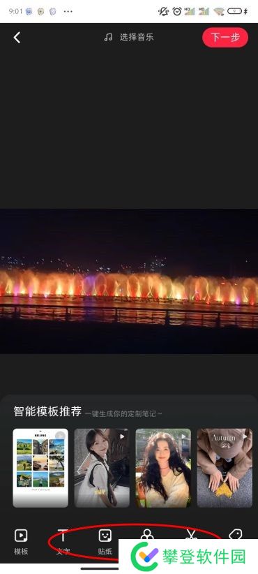3、然后进入制作加工阶段,在最下方的选项中,选择添加我们想要的贴纸、滤镜等,确定好音乐后,也可以运用剪辑功能进一步优化作品;