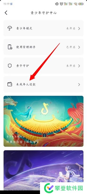 4、在此界面中,我们选择并点击【未成年人退款】选项;