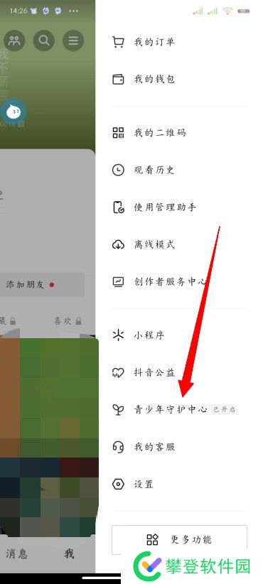3、在弹出页面中,选择并点击【青少年守护中心】选项;