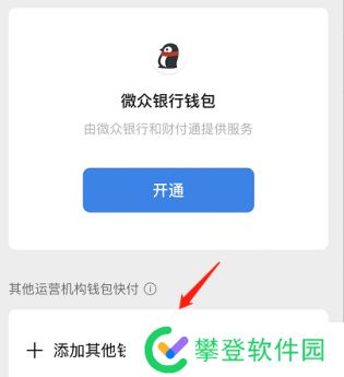 4、最后在微信数字支付添加页面中,选择添加其他钱包快付方式,完成绑定即可使用,开通成功后,用户即可在微信应用使用付款,目前主要应用在微信小程序,也可以像支付宝或微信一样,主动扫码支付。