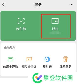 2、在服务功能页面中,选择右上角的【钱包】,通过这可有查看到非常多样的功能