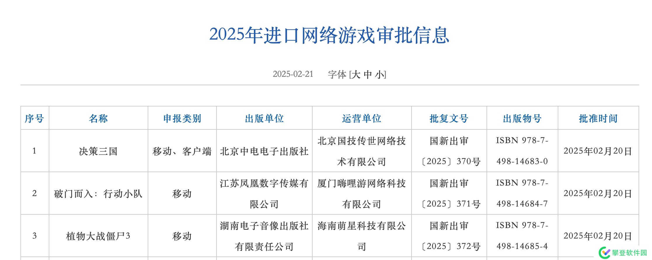 2月21日,最新一批国产、进口游戏版号已正式发布!本次审批版号共有110款国产游戏加3款进口游戏共计113款游戏过审,其中值得重点关注游戏有《植物大战僵尸3》《失落城堡2》《破门而入:行动小队》《元气骑士大乱斗》等。