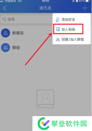 3、在出现的弹窗下拉中,找到【加入班级】选项,点击进入。