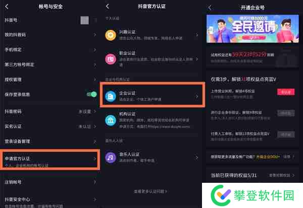- 点击“申请官方认证”,选择“企业认证”,并按照提示上传相关材料即可完成认证。