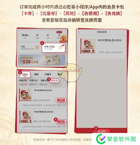 2、卡券-优惠券-其他-去使用-去兑换,即可查看套餐奖励并跳转兑换页面。