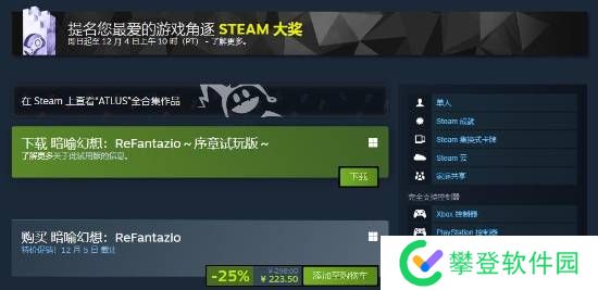 为庆祝入围TGA年度游戏提名,《暗喻幻想》正在全平台打折中,包括Steam。国区优惠价223.5元,仅发售一个多月折扣力度就高达25%。