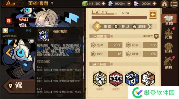 技能强化:Lv.2 每层【感电】效果提供防御提升至3%;Lv.3 同时【感电】效果提供额外效果命中;Lv.4 每层【感电】效果提供防御提升至4%