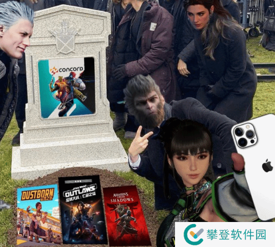 日前,推主@Pirat_Nation制作了一张梗图,梗图显示《星鸣特攻》、《尘路之旅》、《星球大战:亡命之徒》与尚未推出的《刺客信条:影》已经入土,在一旁的天命人与伊芙则在坟头拍照比耶。