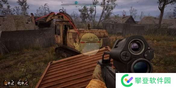 2、需要打碎里面的木箱子,然后从另一个集装箱的顶部跳上去,前往挖掘机上面;