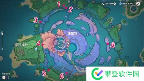 海祇岛林藏的宝藏共有八处,点位如下图所示