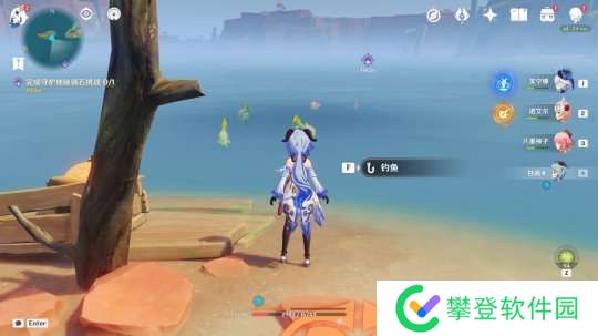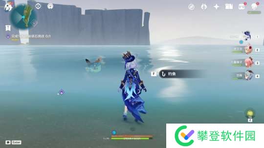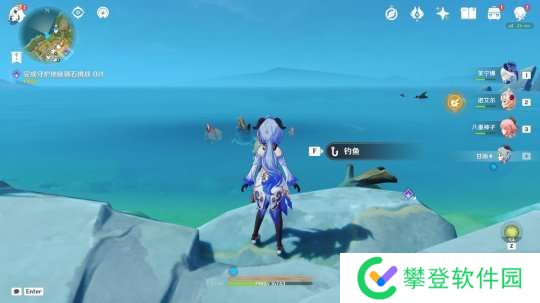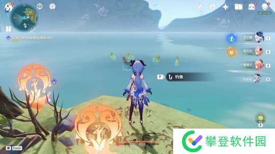 进入山洞后,往里走就能找到钓鱼点: