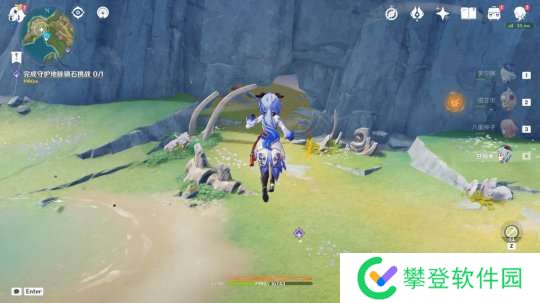 需要先把石壁打开,具体流程为:传送到奥奇卡纳塔西侧的锚点→锚点东南侧打败怪物(可以获得成就:把场地让出来吧)→嵴峰龙会帮忙打开石壁。