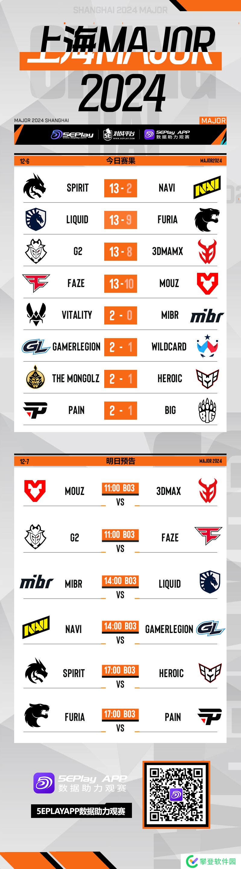 Spirit来到2-1组,距离晋级仅一步之遥。以下为今日赛果、明日预告和积分榜一览。