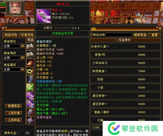 小编又去了物价一直偏高的【半城烟沙】服务器,其词条中更好的相思匕也只售价4.2万元宝。