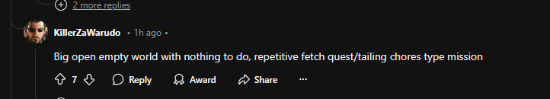 日前,有玩家吐槽了D加密的决策,称“育碧可能是太自信了,以为有人会愿意玩盗版”。与此同时,也有人表示育碧与玩家群体之间欠缺沟通,不知道玩家真正想要的是什么,有人对此感慨道:“我现在才意识到已经好几年没玩过育碧的游戏了。我想我也会放弃《AC影》”,对此,有玩家调侃称“实际上你没有错过任何新作品,因为育碧的游戏都是一样的——空旷的开放世界塞满了支线任务和重复内容。”