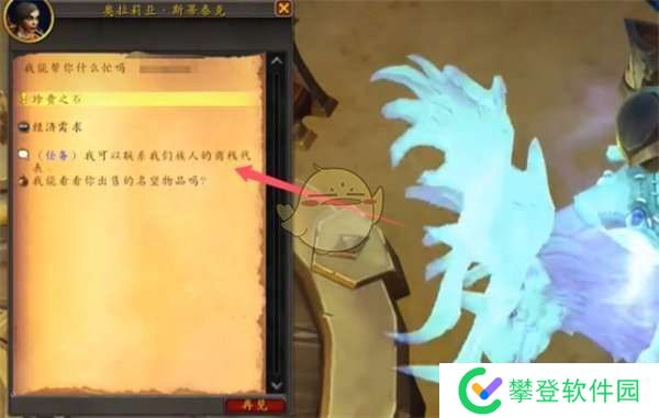 2、接着与其进行对话,选择:我可以联系我们族人的商栈代表