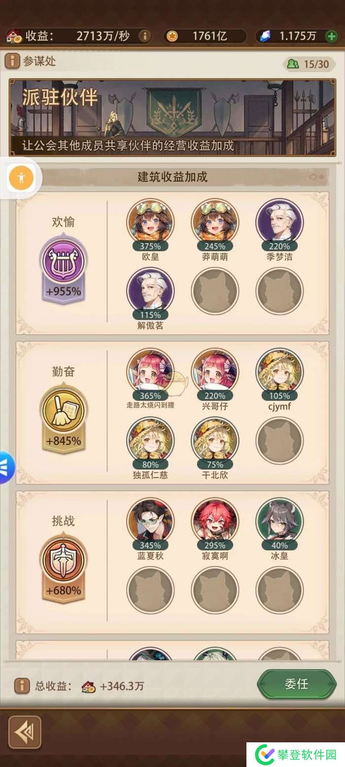 【建议】平均升级建筑等级,员工优先注重开格子塞伙伴,可以重点提升一下工会参谋处收益最高的建筑。