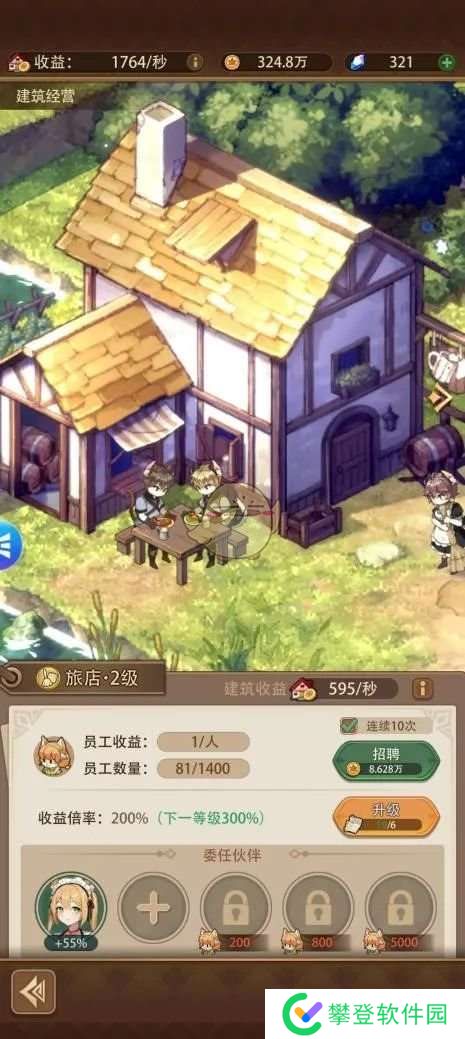 种田游戏田和店当然是必有的要素了,建筑的基础收益取决于多种方面,例如建筑等级,员工数量,伙伴经营能力,迷宫等等。