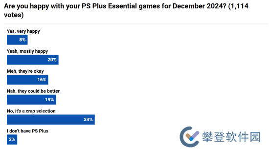 外媒调查本月PS+会免游戏满意度 投票结果显示34%玩家认为是垃圾