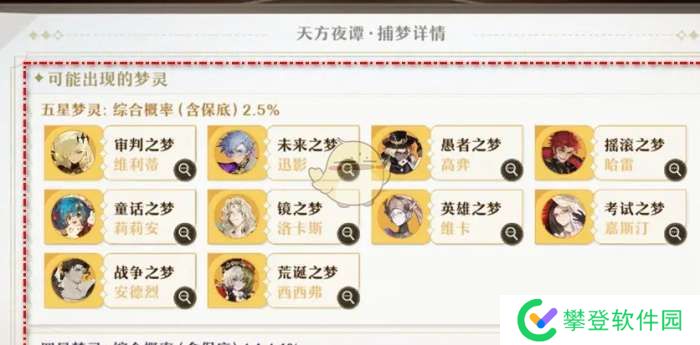 3、点击后会自动跳转,最后可以在下图页面看到该类别的捕梦概率详情