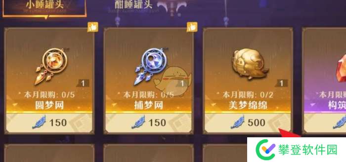 3、接着在睡意兑换页面,找到并点击美梦绵绵(如下图所示)