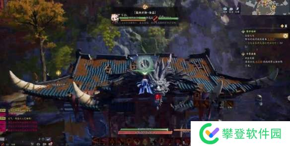 3、朝着龙头建筑物顶端飞上去,在龙头上面找到灵体。