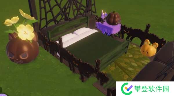 5、最后在里面放上床、南瓜头花盆、灯等物品进行装饰。