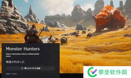 不仅名字几乎相同,游戏公开的主视觉图与卡普空即将推出的《怪物猎人:荒野》也极为相似,据商店页面显示,该游戏由“Maksym Vysochanskyy trading as IndieGames3000”制作。