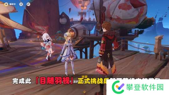 与后方的穆蒲对话进行「目随羽视」挑战,进行正式挑战才能解封宝箱