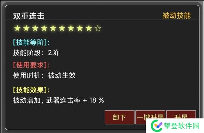 备选- 总结 : 利用高命中高连击来提升命中率和提升回合回合内行动次数。高连击可以出发武器特殊效果,额外增加攻击伤害。利用刻印还能激活对方重伤情况下减防效果,招架成功还能完全免伤本次伤害。【备选印刻】感觉没有比较适合的印刻了,随便选了一个利用率比较大的。