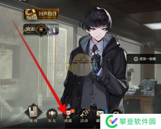 1、首先我们需要进入到游戏主界面,在靠左下角的位置点击成就。