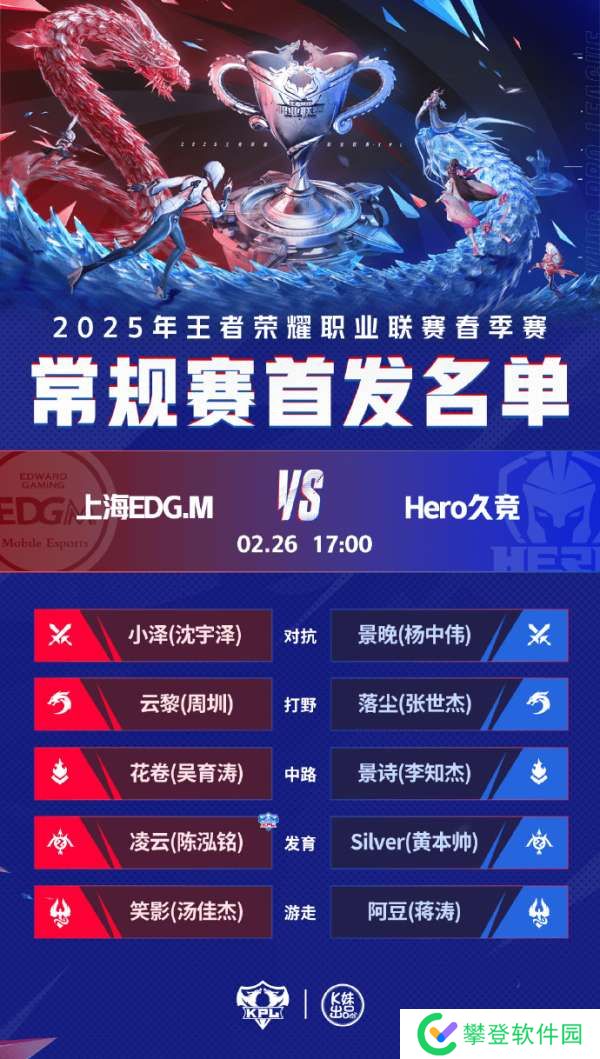 虎扑02月26日讯 [今日首发]RW侠再战K甲战队,EDGM/Hero争夺首个S组名额