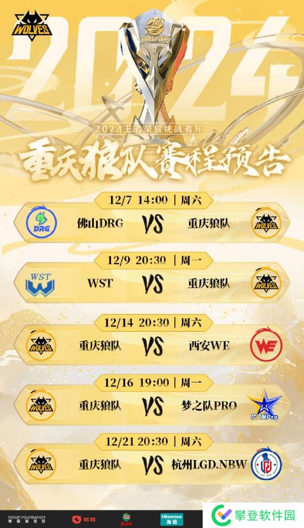 虎扑11月26日讯 狼队发布挑杯小组赛程:揭幕战对阵DRG,一半以上为黄金档!