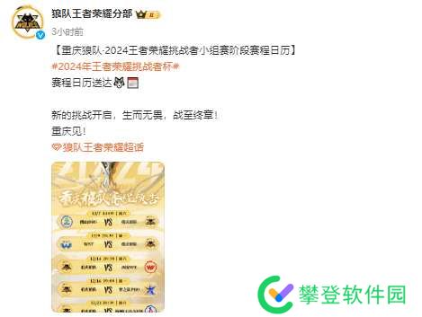 【重庆狼队·2024王者荣耀挑战者小组赛阶段赛程日历】
