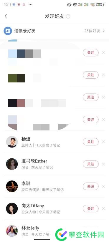 4、然后我们就可以看到,陌生人和通讯录好友,点击【关注】就可以啦。