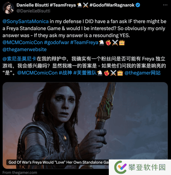 在伯明翰MCM动漫展的《战神》专题讨论会上,扮演芙蕾雅的丹妮尔·比苏蒂(Danielle Bisutti)表示,她愿意回归并参与以自己角色为主角的独立衍生作品。