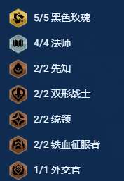 5黑色玫瑰、4法师、2先知、2双形战士、2统领、2铁血征服者、1外交官