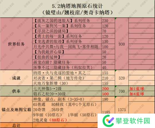 1. 5.2纳塔成就页·其二显示宝箱共202个,表格中统计数量为203个,其中1个计入5.0纳塔成就页·其一(故当前版本5.0成就页宝箱数变为407+1=408);