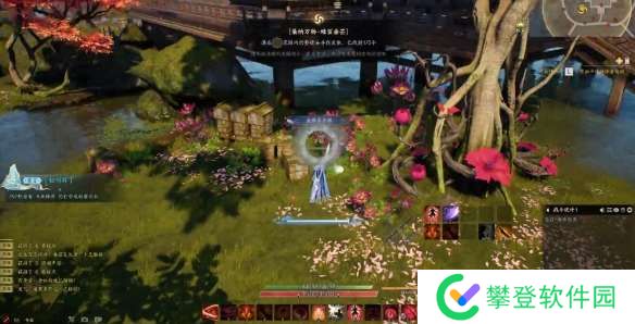 1、来到盛开红色大花的大树下,点击箱子,发现灵体。
