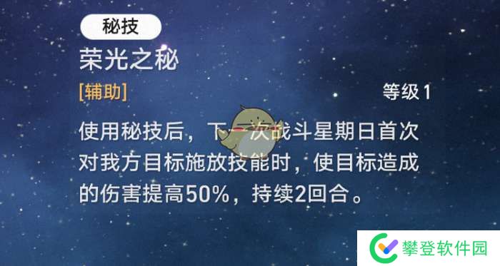 随身秘技,效果不进战斗不消失;可以理解为给星期日的暖机补偿,由于司铎套和星期日专武效果都是需要叠层的,秘技可以在叠层满之前补偿主C伤害。