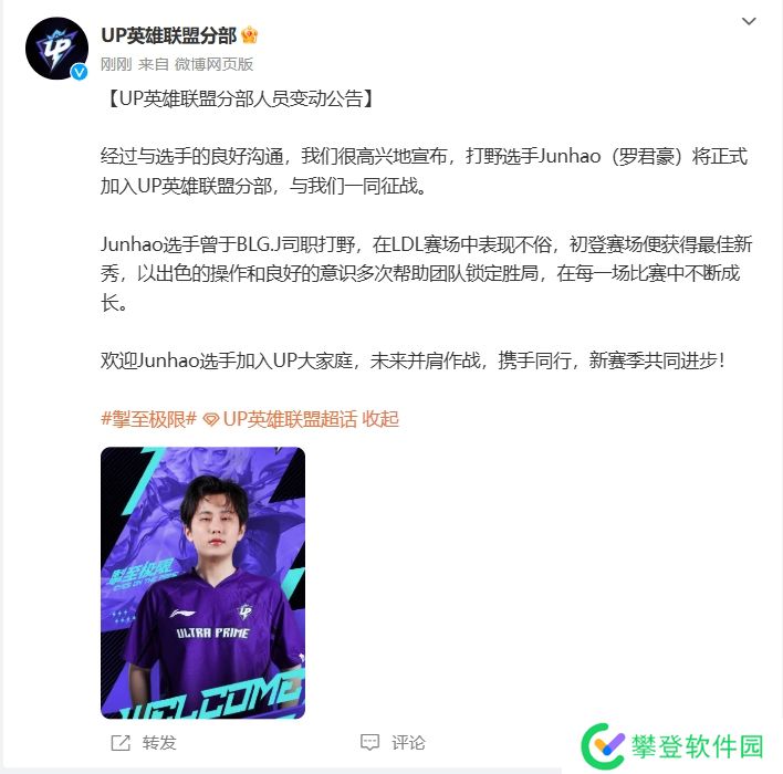 UP俱乐部官方:前BLG二队打野Junhao将正式加盟担任下赛季首发!
