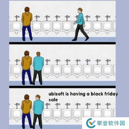 最近,育碧商城举行了秋季大促销活动。为了吸引用户的注意,育碧发布了一张带有恶搞元素的梗图,内容是一名在公共厕所里不断打扰他人的男子,他在不断向别人宣传育碧的促销活动。