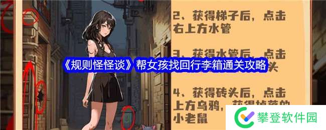 规则怪怪谈帮女孩找回行李箱怎么过?帮女孩找回行李箱这一关图中女孩行李箱丢了,需要利用工具将行李箱找回来。下面给大家带来了“钱从十面八方来”分享的《规则怪怪谈》帮女孩找回行李箱通关攻略,一起看看具体位置吧!