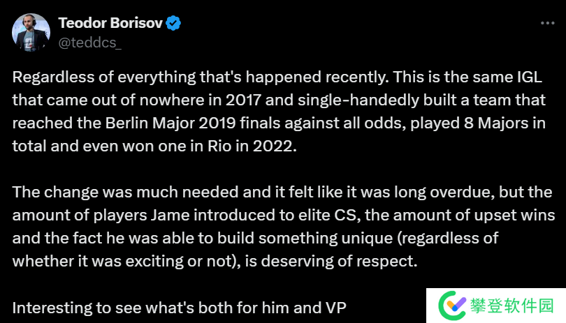 tedd:不管最近发生了什么。就是这位指挥在2017年横空出世,一手打造了一支队伍,在逆境中打进了2019年柏林Major决赛,总共参加了8次Major,甚至还在2022年的里约Major中夺冠。