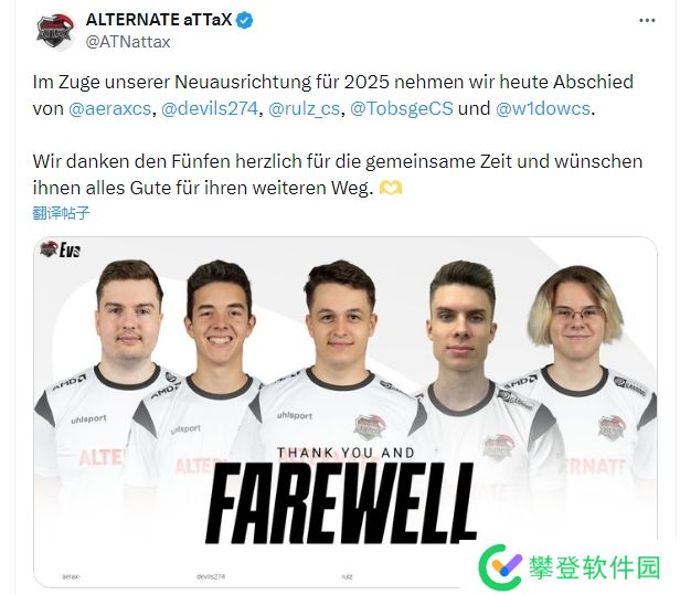 ALTERNATE aTTaX发表公告宣布与五名青训队选手分道扬镳。