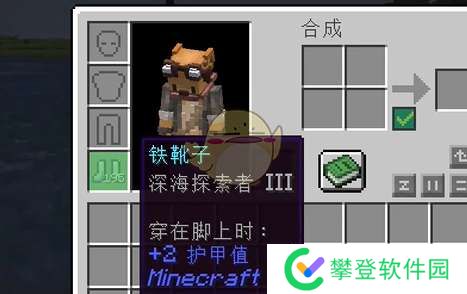 2、附魔效果:可以让玩家穿着鞋子在水中走路不减速,二阶附魔在水里的速度比陆地走还快。