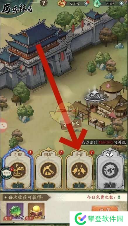 3、在这个页面,点击下方的兵营选项;