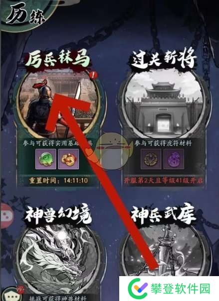 2、接着在历练页面,点击上方的厉兵秣马;